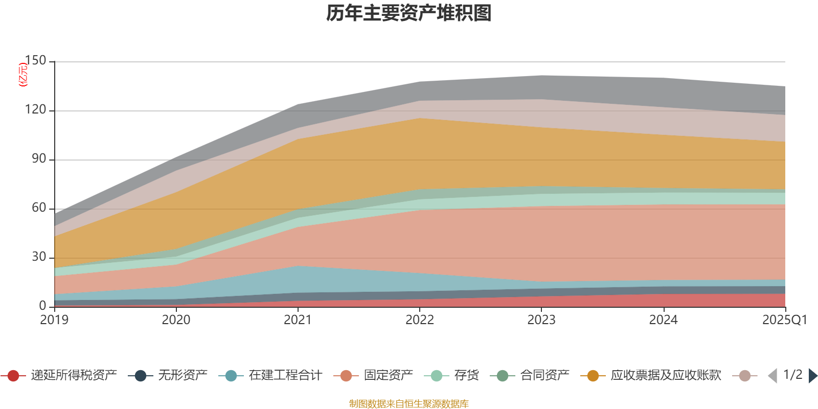 资产重大变化方面,截至2025年一季度末,公司应收票据及应收账款较上年末减少10.58%,占公司总资产比重下降1.65个百分点;固定资产较上年末减少0.47%,占公司总资产比重上升1.13个百分点;其他非流动资产较上年末增加6.43%,占公司总资产比重上升0.47个百分点;合同资产较上年末减少22.08%,占公司总资产比重下降0.38个百分点。