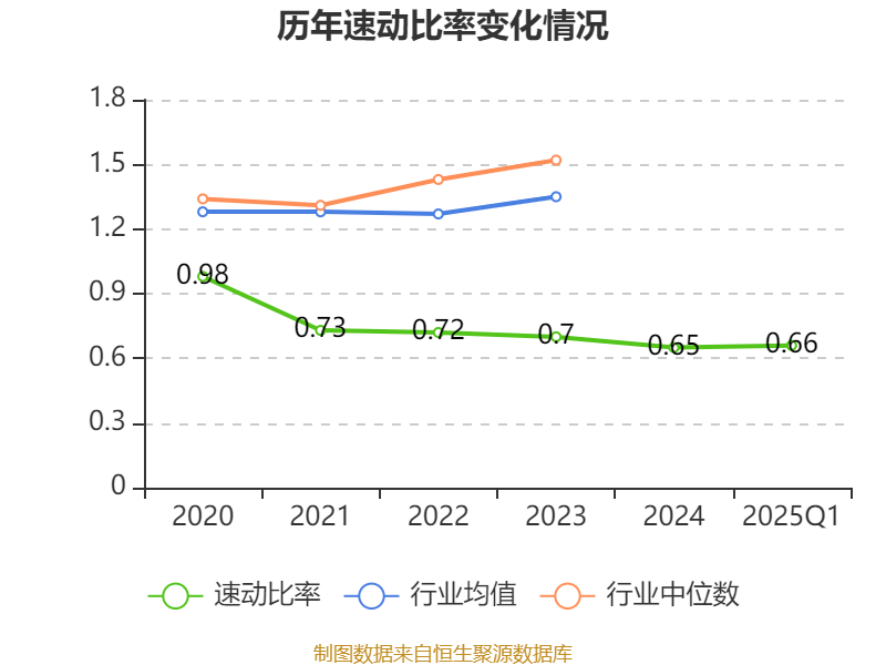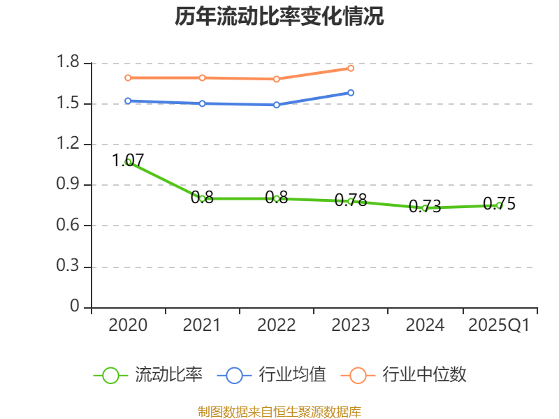 2025年第一季度,公司流动比率为0.75,速动比率为0.66。