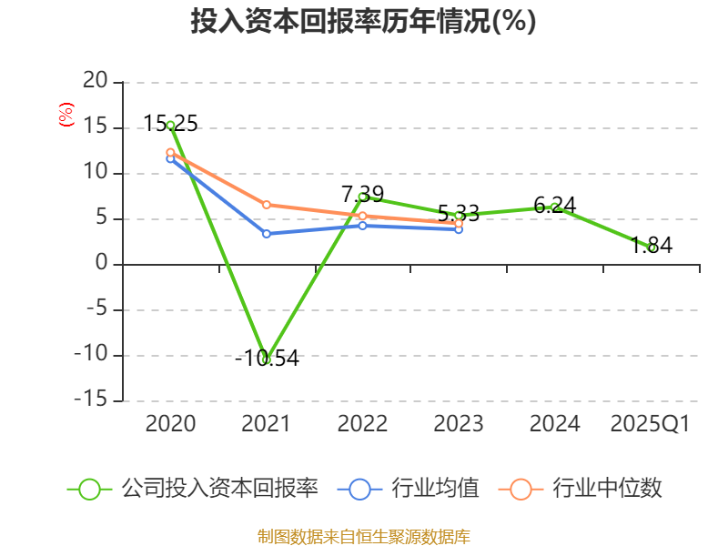 盈利能力方面, 2025年一季度公司加权平均净资产收益率为3.84%,同比上升1.93个百分点。公司2025年第一季度投入资本回报率为1.84%,较上年同期上升0.73个百分点。