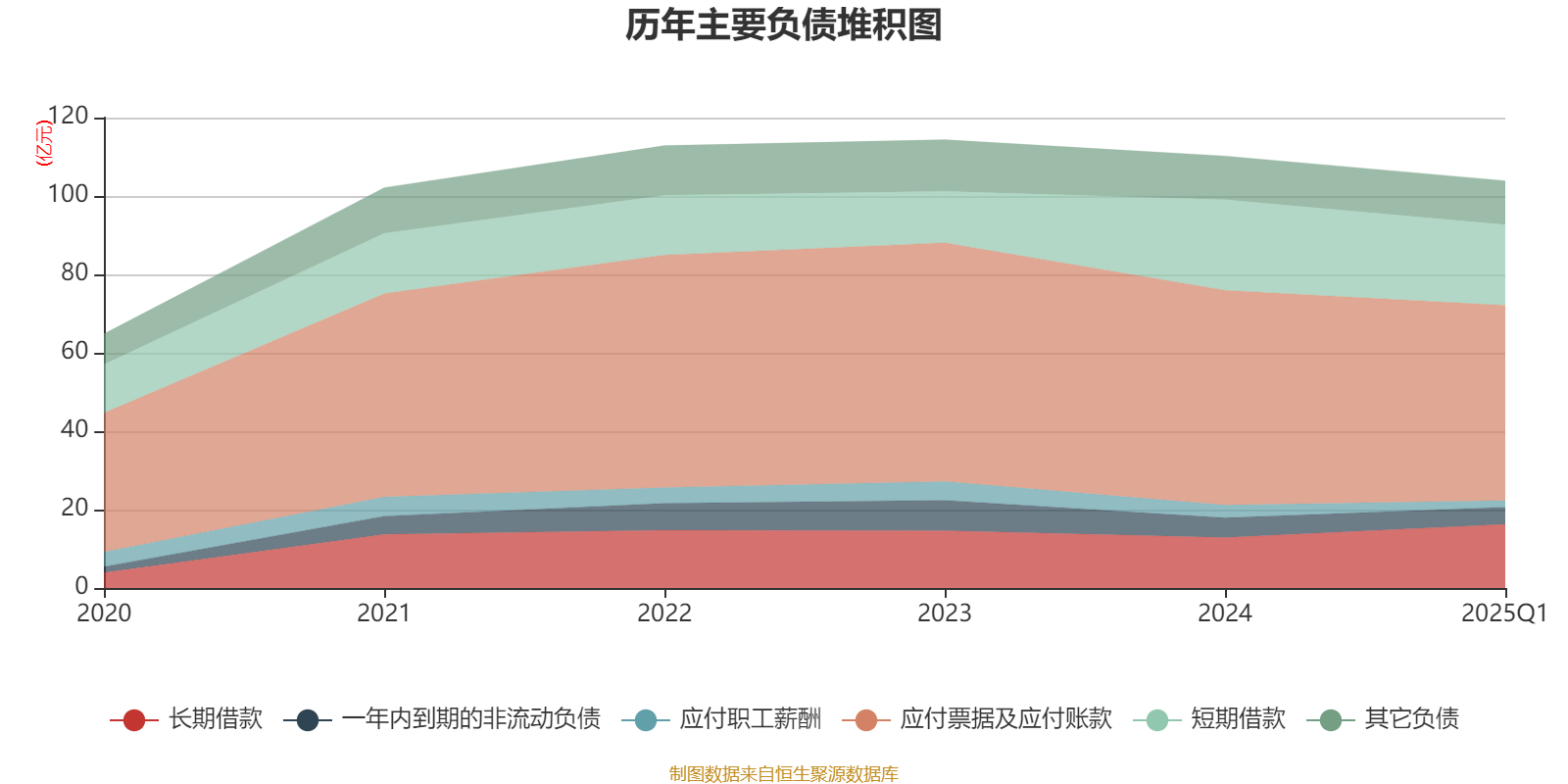 负债重大变化方面,截至2025年一季度末,公司长期借款较上年末增加26.53%,占公司总资产比重上升2.89个百分点;应付票据及应付账款较上年末减少9.13%,占公司总资产比重下降2.19个百分点;短期借款较上年末减少11.02%,占公司总资产比重下降1.25个百分点;应付职工薪酬较上年末减少48.25%,占公司总资产比重下降1.07个百分点。