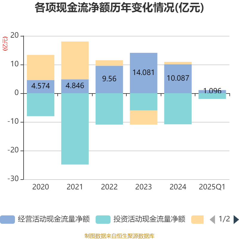 截至2025年一季度末顺配宝,公司经营活动现金流净额为1.1亿元,同比增加3.74亿元;筹资活动现金流净额137.16万元,同比减少2.91亿元;投资活动现金流净额-1.99亿元,上年同期为-2.41亿元。