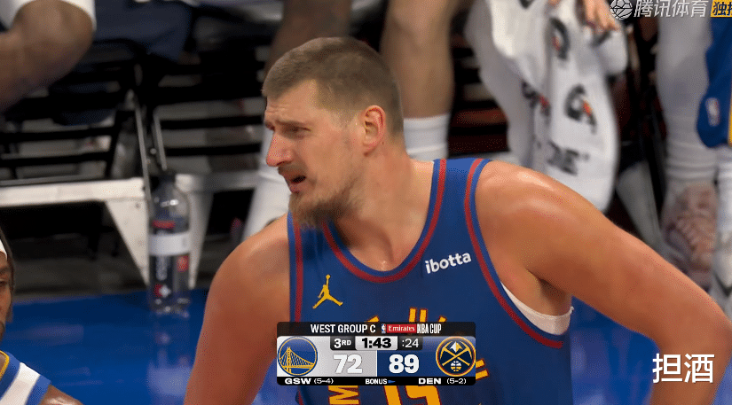 约基奇也只能接受三节打卡下班,在场边观战了。