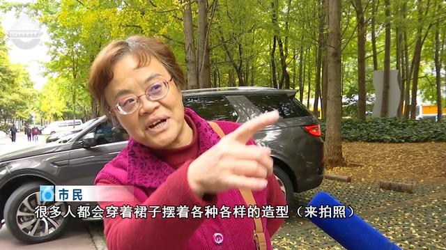 市民:“这里是一个网红打卡点,很多中来年的朋友都喜欢来这里,特别过两天叶子更黄了以后,很多人都会穿着裙子摆着各种各样的造型(来拍照)。你看地上黄色的银杏叶,感觉很温馨。”