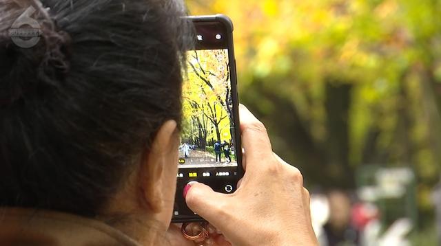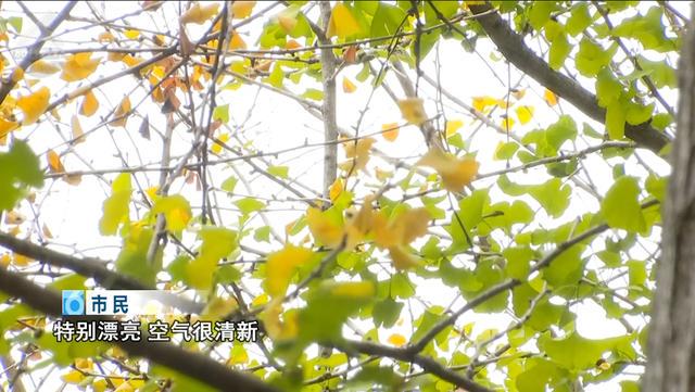 市民:“秋天来了,银杏叶黄了,感觉金灿灿的黄黄的,特别漂亮,空气很清新。”