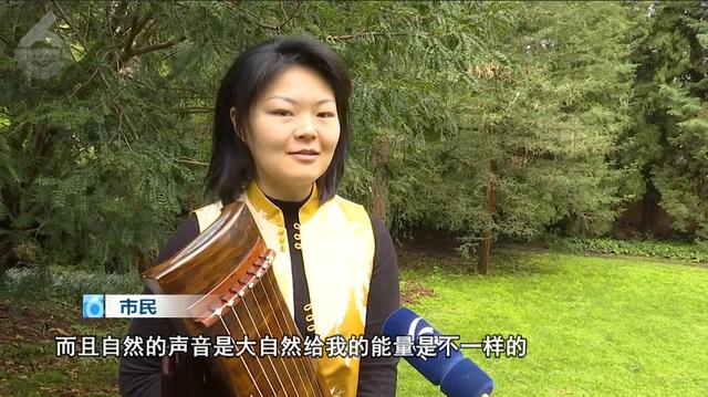 市民:“在户外演奏的话,和我自己在演奏厅或者是自己练琴肯定感觉是不一样的。在自然当中的话我觉得会更疗愈, 而且自然的声音是大自然给我的能量,是不一样的。因为我今天要拍一个自己的视频,我演奏这首曲目叫《梧叶舞秋风》,然后我想象中的场景就是秋叶落下, 翩翩的那种样子非常轻盈。”